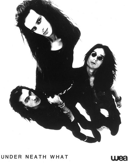 Under Neath What were fronted by a New Yorker (Andy) who teamed up with a couple of Brits to launch Under Neath What on to the world. According to rumour at the time the band were all living in a squat in South London. They got some press coverage in the Indie music press (Sounds, NME, Melody Maker, etc) and certainly played quite a few gigs both headlining themselves at smaller venues such as The Marquee, as well as supporting larger bands on UK tours (they supported The Fields of The Nephilim).