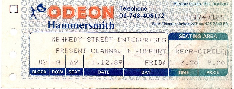 Wrapping up the year was my second Clannad concert (the first being back in May of ’89 – GIG 014) and my second trip to Hammersmith Odeon.
