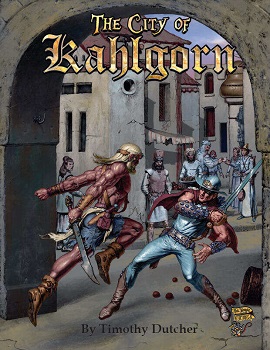 Welcome to the city of Kahlgorn! A trading post on the edge of the wilderness, her streets are plied by barbarians and civilized men alike under truce of mutual profit. But such a truce cannot guarantee perfect harmony. The city, though generally peaceful, is host to many conflicts between law and crime, civilization and barbarism, between faiths, and between individuals.