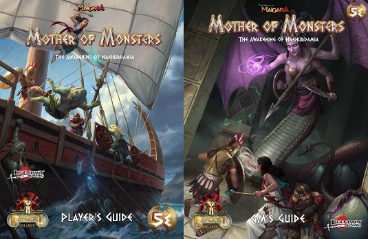 The 40-page Mother of Monsters GM’s Guide brings you a wealth of insider information on the epic adventure opportunities to be found in the Kagari Isles. You’ll find lore about the hidden history of these lands and seas, from the Age of the Titans to the Age of Despair and the current Children of Maigara. You’ll likewise find and expansive gazetteer of the people and places of the archipelago, with beautiful maps, fiendish factions and organizations, and so much more! Plus, you’ll find new DnD 5E bonus material ijn this book too, like: