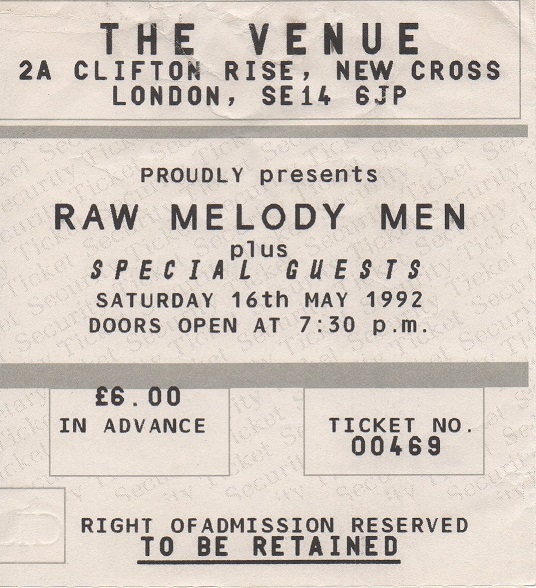 “Raw Melody Men” were the band whose name graced the tickets and poster next to the venue door but we’d all known well in advance (and had gotten tickets well in advance as it sold out pretty damn quick) that ‘Raw Melody Men’ was an anagram for ‘New Model Army’ and the chance to see them at such a small venue as “The Venue” was too good an opportunity to pass up – especially given it was my birthday too!