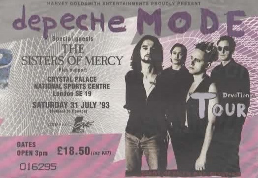 Crystal Palace was the scene of the finale of the European leg of Depeche Mode’s “Devotional Tour”. Having played their 1990 ‘Violator’ album to death they were a band I’d long wanted to see live – and the bonus at Crystal Palace was that The Sisters of Mercy were supporting them! So wild horses weren’t going to stop me going to this one.