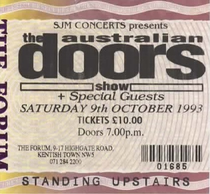 I can remember nothing of the support band, The Big Truth Band. My notes indicate they were ‘ok’ but certainly didn’t set my world on fire. The Australian Doors, however, were amazing. Classic track, after track, and the band looked and sounded perfect. I, luckily, managed to catch them again a couple of later (more of that when I get to 1995) and am so pleased I did.