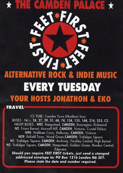 Now I used to go to Camden Palace’s Tuesday ‘Feet First’ night a fair bit anyway, but on this occasion a whole crowd of us went largely because CNN were playing. I’d seen CNN the previous December in the back room of the Water Rats (GIG 141) but was really keen on seeing them again as they’d become a favourite of the moment.