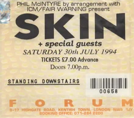 After spending all Saturday hosting a Magic: The Gathering day for Leisure Games down at one of the local pubs (The Minstrel – my favourite local drinking haunt in Finchley at the time – sadly no longer there) Jim, Sue and myself headed down to Kentish Town to catch rockers Skin at The Forum.