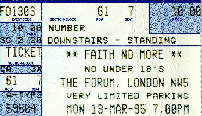 Faith No More was probably my mate Nick’s favourite band, and had been for years. We’d long spoken about seeing them so when they came back to London Nick, Dawn, Simon, Matt, Angela and myself ended up at The Forum in Kentish Town with high expectations. Especially as they were playing a series of ‘smaller’ venues as this was a European ‘mini-pre-tour’ in support of their forthcoming ‘King For A Day… Fool For A Lifetime” album.