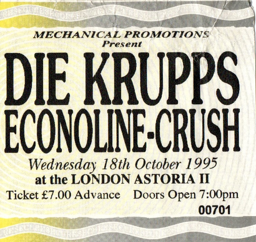 Die Krupps rolled back into town, heading the LA2. I’d seen them twice before, both times back in 1994. The first time headlining their own gig at The Underworld in Camden (GIG 153), and then six months later supporting Paradise Lost at The Astoria (GIG 180).
