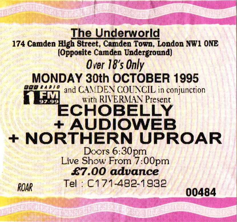 Anyway, kicking off the week on this Monday was a gig at The Underworld. All three bands were getting attention in Melody Maker/Sounds/NME and Echobelly had actually had two Top Ten albums and a host of singles hitting the Top 40 so getting a chance to see them at a venue such as The Underworld was a rare treat.