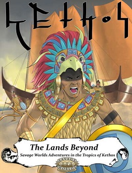 “Lands Beyond” is the second setting book for the world of Kethos. This unique fantasy role-playing setting for Savage Worlds covers all of the tropical latitudes of Kethos, from the vast continent of Yanzu to the countless islands of the Tengan Reach and all the other lesser-known islands as well. Campaigns in the Lands Beyond may take a number of directions – exploration of savage jungles and ancient ruins, colonial wars between great powers and their allies, pursuit of glory and treasure as a pirate, even adventures drawn from the myths and legends of people as disparate as the Maori or the Maya.