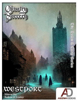 The town and city series of books will explore the conurbations of the Kingdom of Anderia, giving the gamesmaster a place to base his adventures from. Each book will have maps of the city or town and details of the more interesting places within. The idea is to represent the more playable locations, a grocery store doesn’t need to be detailed in a sourcebook, unless of course the produce there comes from Arcadia and the storey is to find out where and how the owner manages to get such goods – now that’s worthy of entering into a sourcebook. Therefore you will not find the ordinary here, you will get inns and taverns with patrons and some story hooks to hang your town and city-based adventures on.