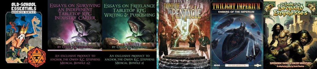 Welcome back to this weeks DriveThru RPG Top 100. This is the first one I’ve published in a few weeks due to holidays, and a funeral, but am back with a new Top 100 rundown. This week sees “Essays on Freelance Tabletop RPG Writing & Publishing” reclaim the number 1 spot from last weeks new entry “Tome of the Pentacle” for Mage: The Awakening which slips to number 2. 11 New Entries, and 2 Re-entries, bring some changes in to our Top 100.