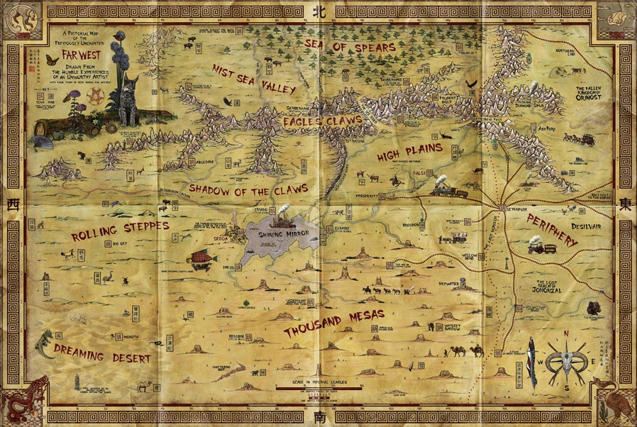 Imagine an endless frontier where wandering heroes fight for righteous causes while secret societies engage in shadow wars.