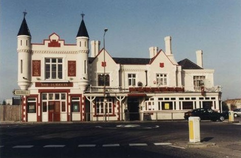 A bunch of us went to The Turrets, a weird looking pub in Frien Barnet that was built in 1887 and demolished in 2013. It had a function room on the first floor which was the venue for the evenings shenanigans.