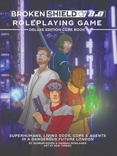 This full-colour, 364-page Deluxe Edition of the Broken Shield Roleplaying Game is a complete game and includes everything you need to play! Enjoy exciting, fast-paced investigation and spy missions in a science-fiction future where Echoes wield reality-warping powers, and living gods meddle in the affairs of humanity… You are the heroes who can bring hope to a fractured universe!