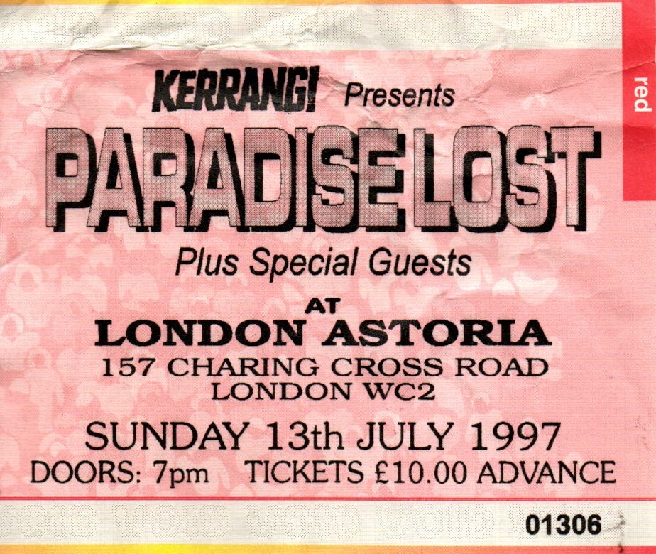 Fresh from a weekend in Oxford I managed to get back to London in time for Sunday evenings planned entertainment – Paradise Lost at The Astoria. I’d seen Paradise Lost back in 1994 (GIG 180) when I hadn’t known them (I was at that one for the support band – Die Krupps) and wasn’t really keen on them. In the intervening years they had released there ‘Draconian Times’ album in 1995 which I really liked so when I saw they were playing London I grabbed some tickets.