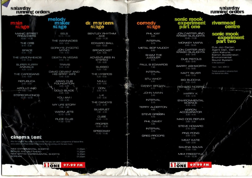 Day 2 of the 1997 Reading Festival. We didn’t see as many bands as we’d probably usually see at a festival as we all took a long break in the middle of the afternoon/early evening to do a raid on the local Toys R Us and buy up a bunch of fairly high powered water pistols/rifles. It was a pretty sunny and warm day and for some reason this resulted in a roaming water pistol fight across part of the campsite. It was great fun, and certainly cooled everyone down a lot (be they active participants or unfortunate bystanders caught in the crossfire). But I did manage to see a few bands.