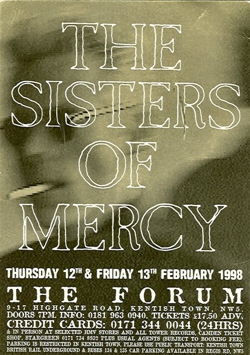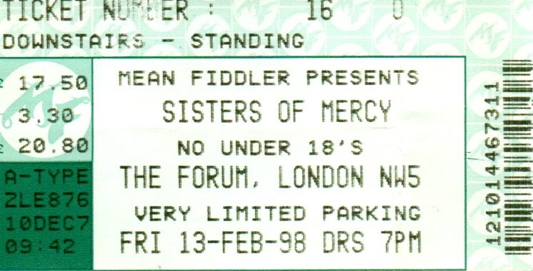 The Sisters of Mercy were back in London as part of their “Event Horizon” tour. Two Forum dates (of which this was the second) were their only UK gigs on the tour – and indeed for the whole of 1998.