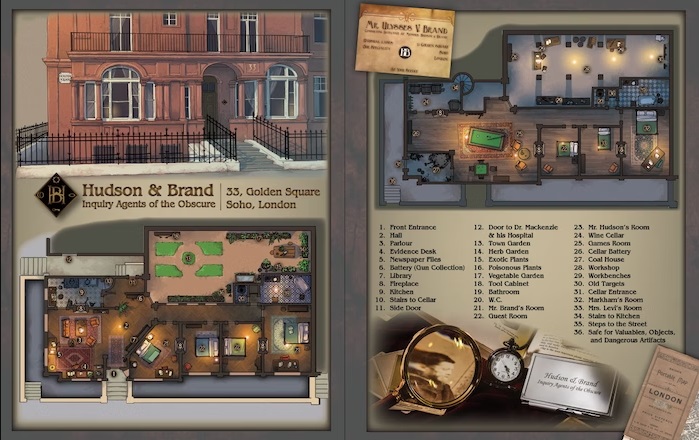 The first in Stygian Fox’s ‘Safe House’ series for 7th edition Call of Cthulhu™, Hudson & Brand, Inquiry Agents of the Obscure is an official Cthulhu by Gaslight™ consulting detective agency in the style of extravagant freelancers, such as may be found in the stories of the great Sherlock Holmes or Hercule Poirot. However, instead of being a source for the Investigators to plumb for information whenever the situation gets too tough, or if they need a nudge in the right direction, it is somewhere they can actually inherit, utilise in their own investigations, or use as a safe haven from the outré horrors of the outside world. It is a starting platform, if you will, for adventures into the dark and fog-shrouded streets of Mythos-infested London.