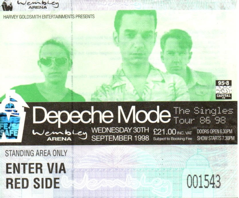 This was Depeche Mode’s “The Singles Tour 86 98” so you just knew it was going to be packed with hit after hit. Purity and Tim Simenon were the support acts, although by the time Delphine, Richard and I arrived I think we managed to catch a bit of Tim Simenon’s DJ set but that was about it.