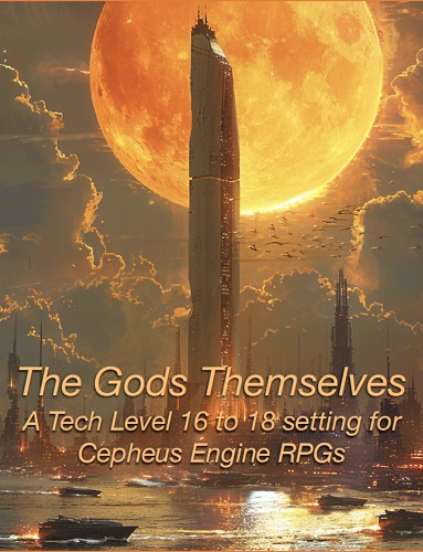 The Gods Themselves is a TL 16 to 19 settling and culture for 2D6 SF RPGs. This is not a complete game, you will also need a set of RPG rules to play*.