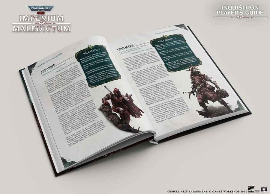 The Inquisition Guides bring the Holy Orders of the Emperor’s Inquisition to life at your gaming table. This first half of an exciting two-book set for Warhammer 40,000 Roleplay: Imperium Maledictum, the Inquisition Player’s Guide lets you craft intimidating Inquisitors and their loyal acolytes and equip them with everything from ominous Daemon Weapons to loyal Psyber-Familiars.