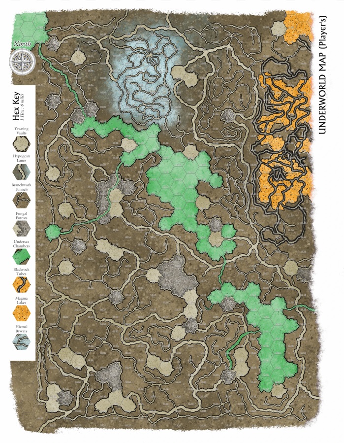 The 532-page second volume is designed for a heroic party of 6-8 adventurers to begin at 5th level and reach a minimum of 9th level by the book’s conclusion, although most parties will hit 10-12th level if all underworld encounters are exhausted. Though the mega-adventure was originally designed as a sandbox campaign, it also supports episodic adventure path playstyles, as well.