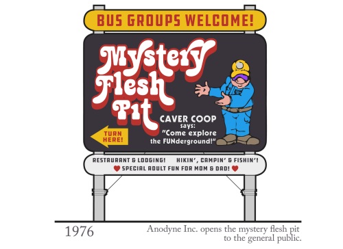 Over the decades, the Permian Basian SuperOrgamisim goes from roadside attraction to National Park and natural resource, all documented through tourism signage, “wildlife” brochures, safety manuals, and government memos. When we saw this magnificent online grotesquerie, we knew this would be an awesome tabletop RPG!