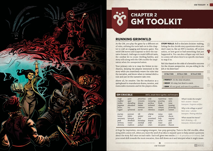The easiest way to get a clear understanding of the Grimwild mechanics is to download the preview. It has the entire rule system in it. But here are some highlights that show off unique aspects of the system: