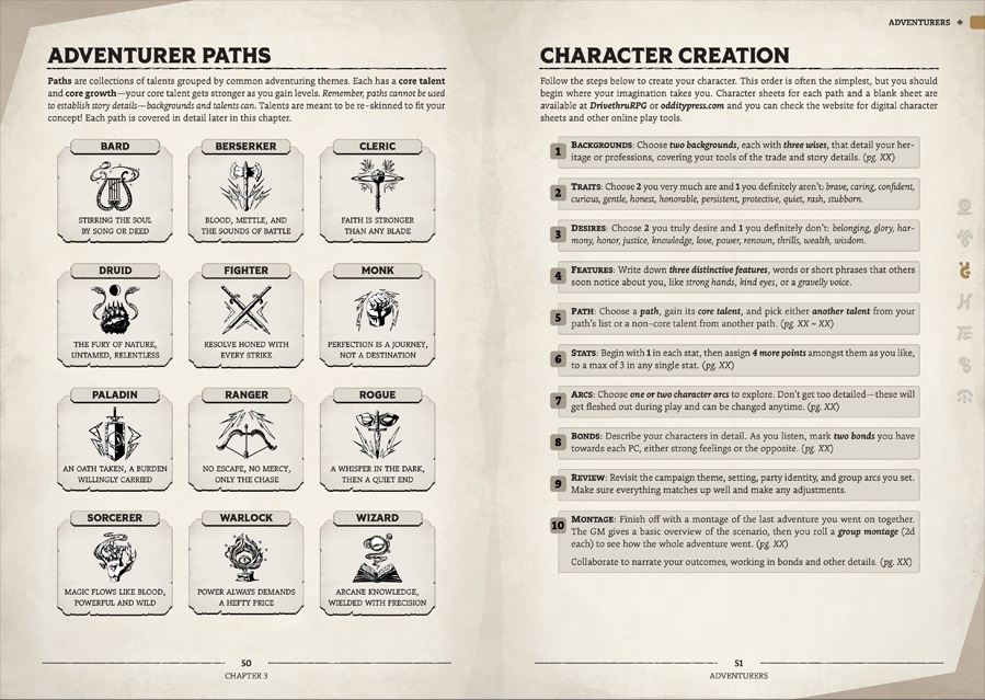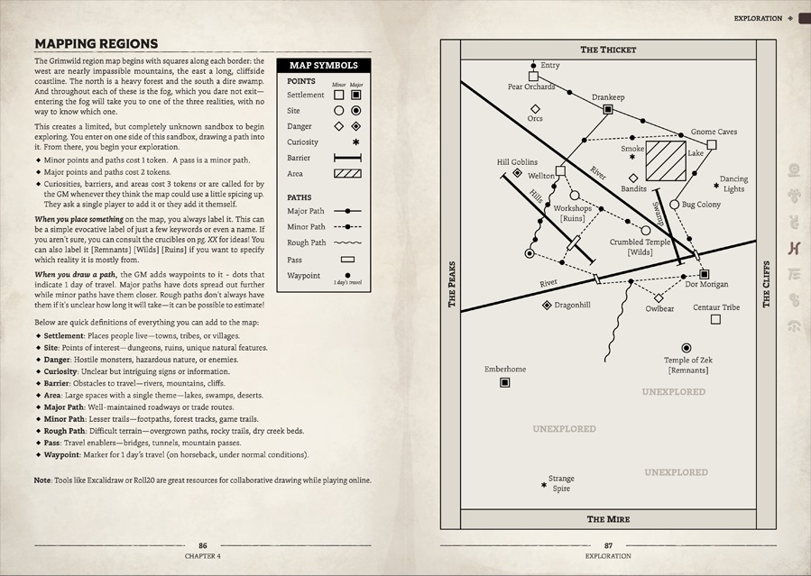 Grimwild has a lot going on inside, but here’s an overview of big-picture stuff. We’ll talk about mechanics later.