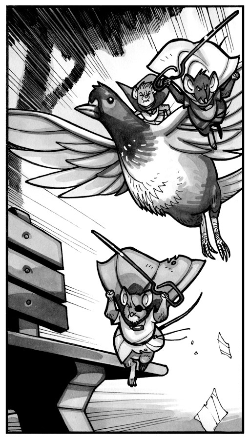 All actions a mouse can take fall into one of the following categories: Combat, Stealth, Manipulate, Stunt, Investigate, Resist Magic, and Read Person. Each action is a Powered By the Apocalypse-style move, each with its own set of Perks. For example, here are the perks for the Combat Move: