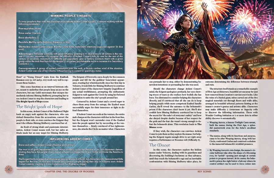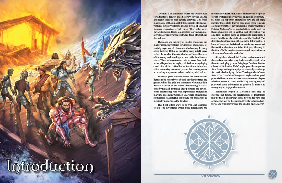 Creation is a world as wide as the sky, filled with adventure and mystery enough to overwhelm spirit and human alike. It’s good, then, that the Exalted, champions imbued with Creation’s greatest powers, stride forth to meet these challenges. But how will the world be changed in their wake?