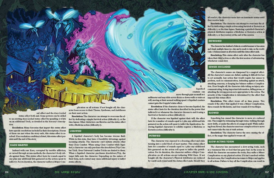 The World Below is a game of adversity, heroism, terror, and awe. Your characters will overcome or be defeated by terrible beasts, environmental calamities, and Kaos storms ravaging their surroundings and the souls they encounter. They will chart their journeys, chronicle their tales, and pass their stories down to their descendants, who will, in turn, become your characters when your old ones perish or retire.