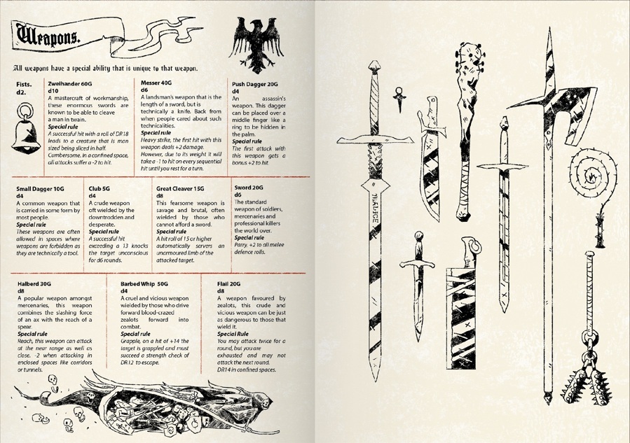 - Wield unique and characterful weapons, each with their own rules and advantages on top of the damage die.
