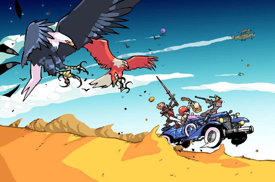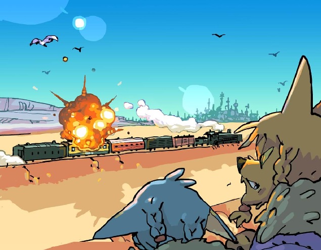 Inspired by the likes of SandLand, The Good the Bad and the Weird, Mad Max, Progear, Lupin III, Trigun, Tekkon Kinkreet, and Linda3, TERROR TARGET GEMINI is a hyper-violent, anachronistic western adventure, living out a colorful, zany fantasy atmosphere with action manga overtones populated by demonic gunslingers and martial arts witches.