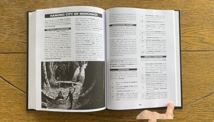19) Hanging City of Nenchagi (Underground, Level 4-7). The Mask of Distant Suns, an artifact of mental power, is said to be lost in the underground Hanging City of Nenchagi. But reaching the complex is no easy task – a gruelling five day trek in perfect darkness. Not to mention the cursed urgot residents, and their aberrant “god”…