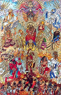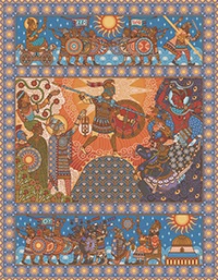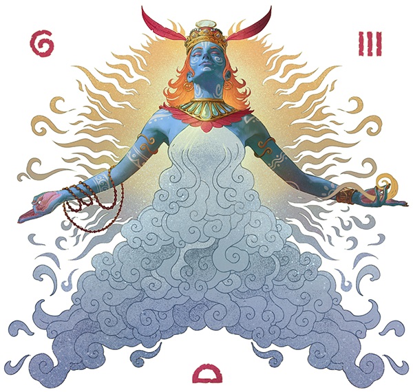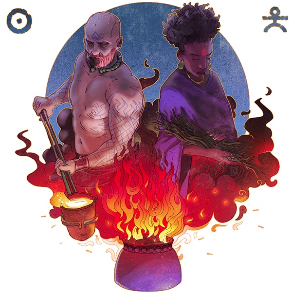 Cults of RuneQuest: The Gods of Fire and Sky features 13 brand new cults, including Shargash, the god of war and destruction, Lodril, the god of peasants, and the mightiest sun god, Yelm.