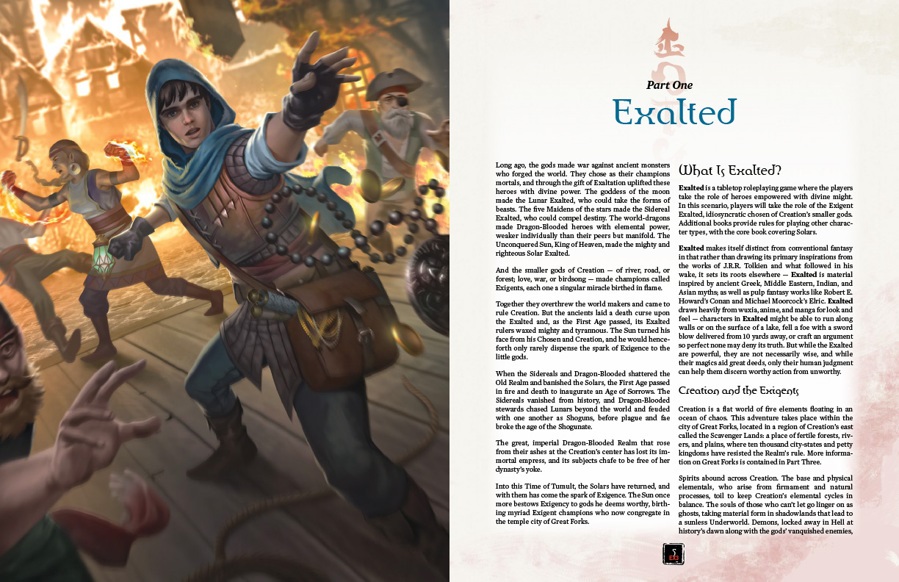 - A full introduction for Storytellers and players to Exalted Third Edition’s rules, with advice for groups entirely new to roleplaying games.