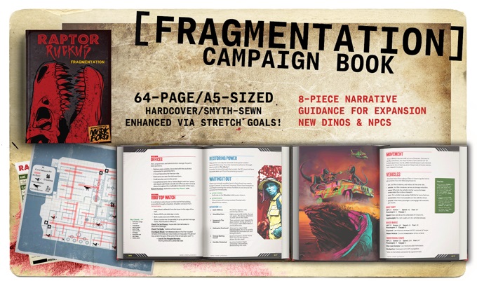 Raptor Ruckus: Fragmentation is the campaign book you didn’t know you needed, but now you can’t live without. Escape Site A island, but not before you find yourself entangled in a maze of rampaging Dinosaurs and desperate undercover agents.