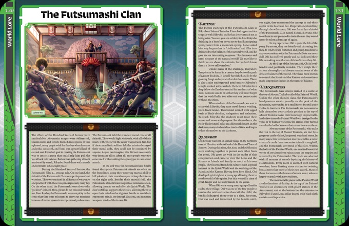 21st Century Rock: Finally, the last chapter gives the Storyteller a 10 page example mission to use as an introduction to the Veil War. It’s a tale of revenge where the players will have to chase down a renegade rockstar who went after the yokai that killed his bandmate.