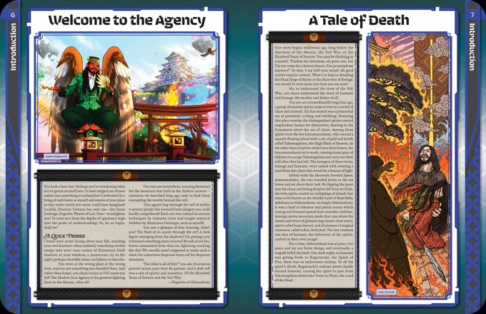 An Introduction to the Veil War: The first chapter of the Core Rulebook gives you a look into the history of the Veil War, lets you know what to expect from the game, and gets you up to speed on the basics of Shadow Scar.