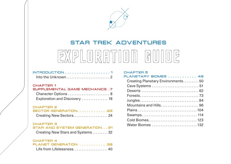 This Exploration Guide is essential reading for any Star Trek Adventures crew interested in expanding their characters, missions, and campaigns into the final frontier and creating new sectors, worlds, and environments to discover and explore.