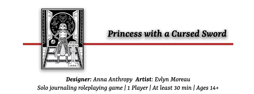 Princess with a Cursed Sword: A Book of Solo Journaling Games is a collection of five solo journaling roleplaying games by designer Anna Anthropy. The games are powered by tarot cards and centered on exploration and reflection.