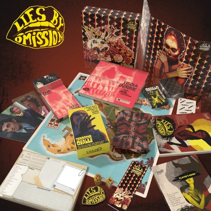 - L’Isola Lacrimeis the first full campaign setting for Lies By Omission. This 200+ page hardcover dives deep into the history, secrets, and conspiracies of Isola Mezzogiallo, a fictional Mediterranean island caught in a web of political fear, folklore, and occult corruption. The book includes 50 named Cast members (NPCs), 30+ detailed locations, and over five interconnected Mysteries to unravel.