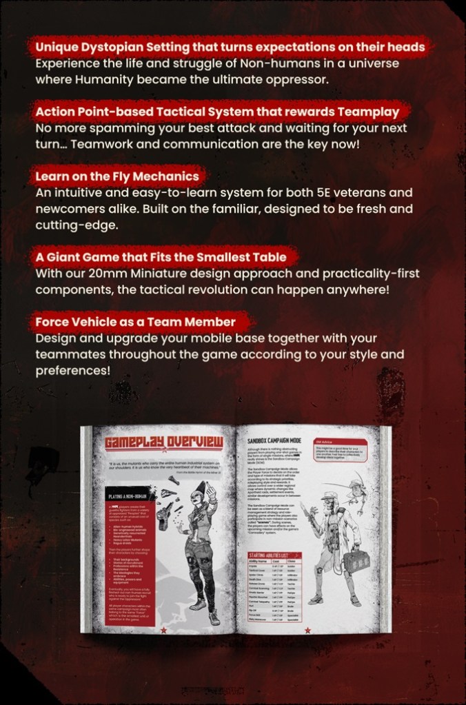 If D&D meets XCOM in a grimdark galaxy! Rise against human tyranny in this new TTRPG. Form your band of non-humans and join the riot!
