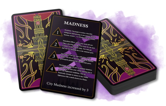 The “Mindrift” Madness Deck crafts stackable Madness and Resilience effects on both players and the city, encouraging integrated gameplay and roleplay alike.