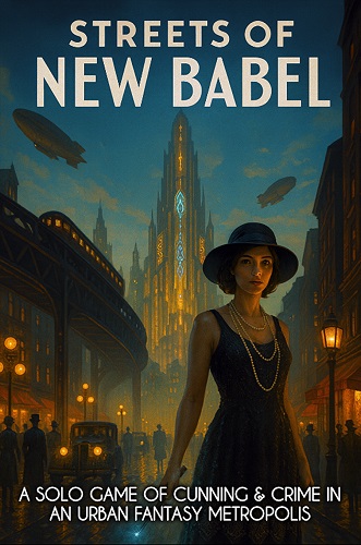 Streets of New Babel is a solo tabletop game of cunning, intrigue and danger set in a jazz-age urban fantasy metropolis.