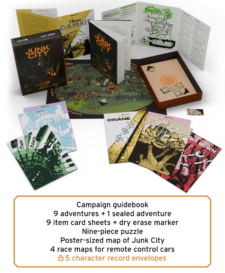 - Guidebook (36-pages) detailing Junk City’s factions, key NPCs, districts, streets, shops and more.