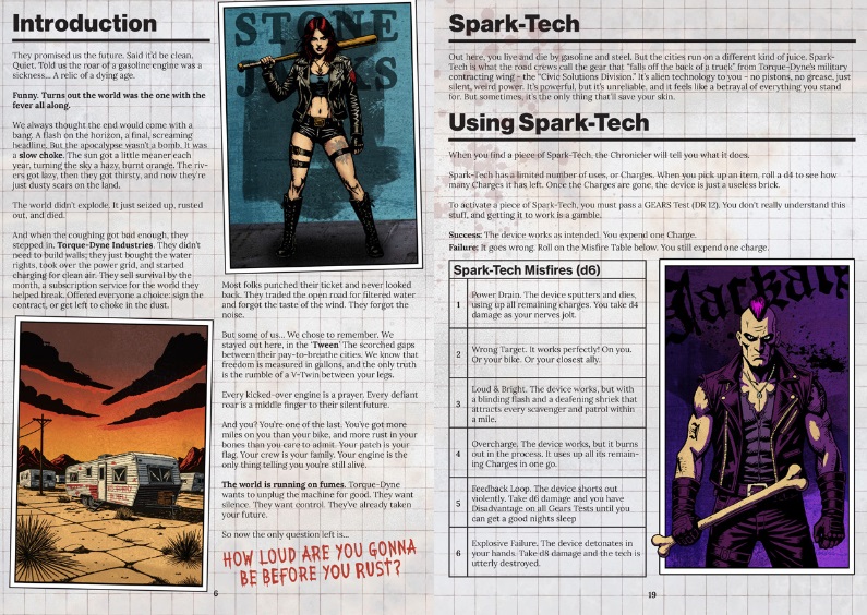 - Spark-Tech: Unreliable, glitchy corporate gear that “fell off a truck”. It might save your skin, but it feels like a betrayal.