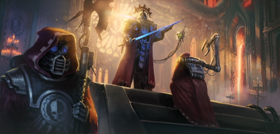 The Imperium would not stand without the Priesthood of Mars. From smog-choked forge worlds to the bowels of every voidship and the heart of every hive city – Tech-Adepts work with tireless reverence and zeal to maintain the function and secrets of the Imperium’s technology. As acts of worship, they routinely replace what they see as fallible flesh with bizarre mechanical augmentation, seeing it as a way to move closer to the Machine God and toward perfection.