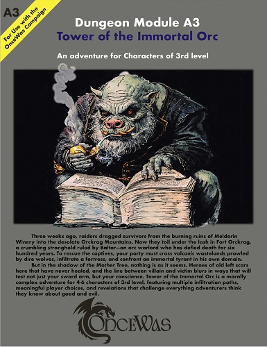 But in the shadow of the Mother Tree, nothing is as it seems. Heroes of old left scars here that have never healed, and the line between villain and victim blurs in ways that will test not just your sword arm, but your conscience. Tower of the Immortal Orc is a morally complex adventure for 4-6 characters of 3rd level, featuring multiple infiltration paths, meaningful player choices, and revelations that challenge everything adventurers think they know about good and evil.
